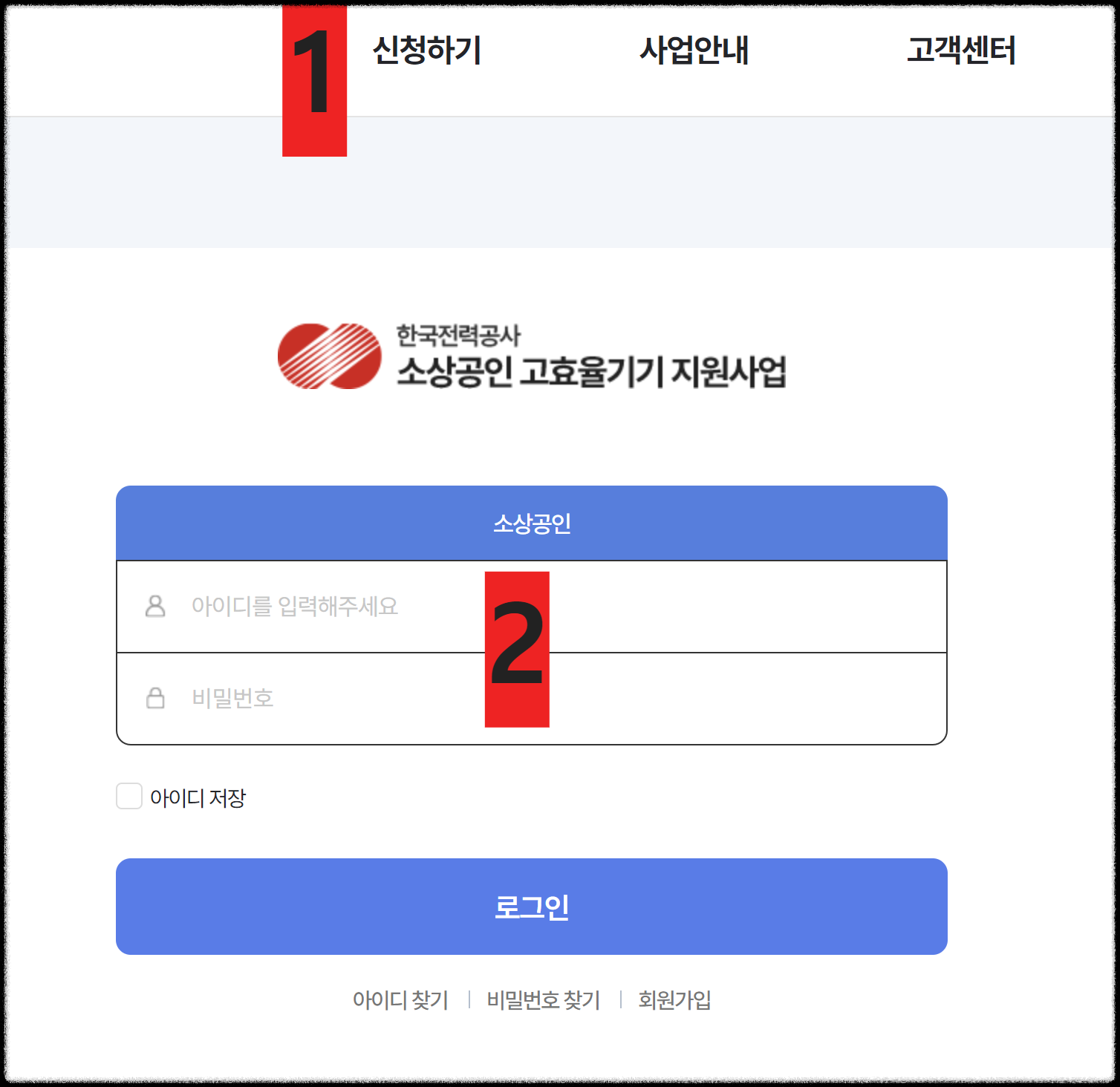 1. 소상공인 고효율기기 지원사업 홈페이지 접속