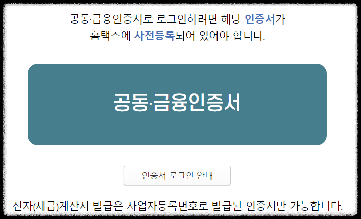 1) 국세청 홈택스 로그인을 위해 공동인증서 또는 금융인증서 필요