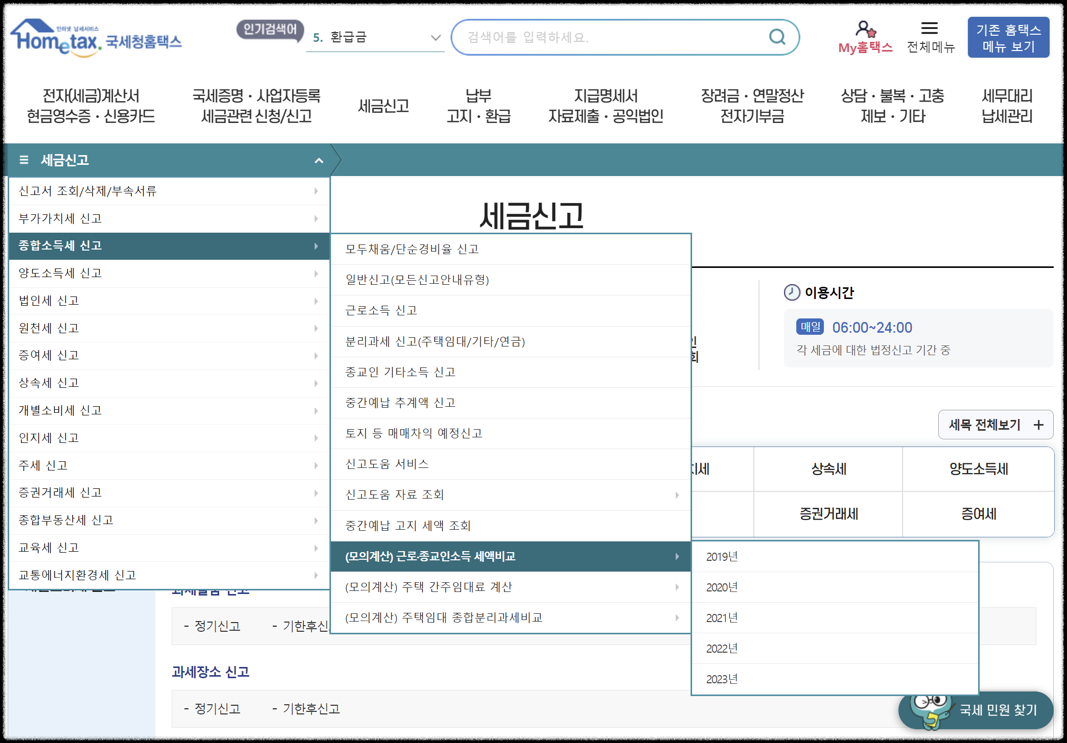 종소세 환급일 조회하기